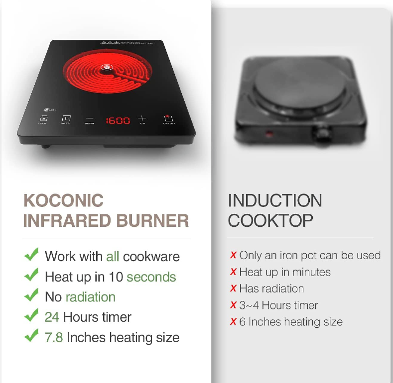 4. Applicable to different cookware--1600W power infrared burner.All cookware can be directly applied,the most important thing is to work without open fire and lampblack to give you a clean cooking environment