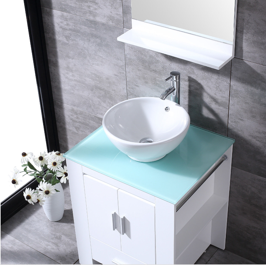 Thick Tempered Glass Countertop - The clear tempered glass countertop increases the overall texture, and is easier to maintain and clean than the ordinary ceramic countertop, and it will not to turn yellow after long-term use.