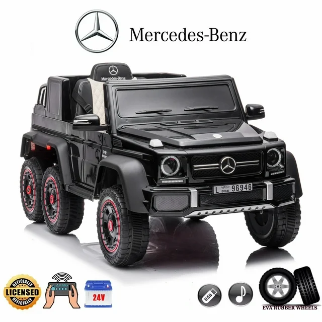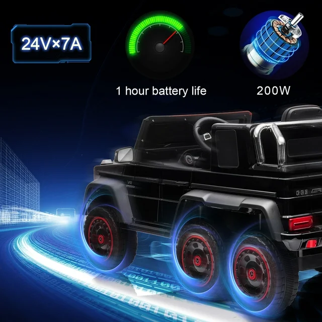 24V Licensed Mercedes-Benz Electric Car for Kids with 6 Wheel, 24V7A Battery Powered Kids Ride On Cars with Remote and Leather Seat, 3 Speeds, Music, 2WD, Horn, LED Lights (Black)