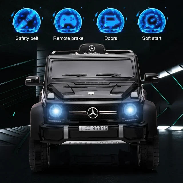 【Comfort and Safety】The lercedes-Benz for kids can bringdifferent driving experience to children. The slow start andstop function can reduce the impact of sudden acceleration onchildren. Doors with safety locks and extended leather seats with seat belts ensure maximum safety and comfort forchildren. The large wheels with spring suspension system can adapt to any common road surface. In addition, there is a storage box at the back of the car that allows children to store their treasures.