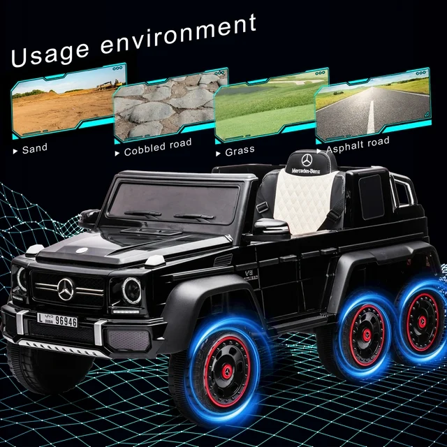 【 6-wheel design and 2 driving modes 】 This Mercedes Benz children's car provides you with an additional set of wheels. 6-wheel allows the children's car to provide greater traction on steeper slopes and more grip on grass and rock surfaces. It has two driving modes: parental remote control and child manual control. Children can experience the fun of driving a truck alone, and parents can also control it through a remote control to ensure safety.