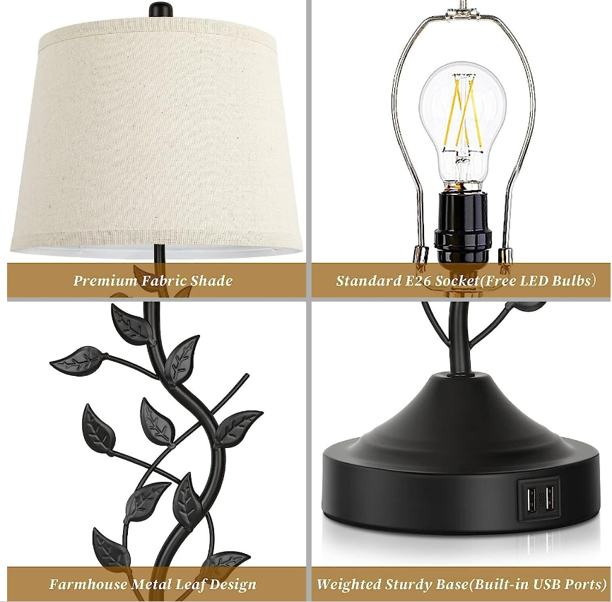 ❤【Elegant Table Lamps for Home Lighting】This table lamp is aesthetically styled with the metal leafy design which creates an organic element and endows it with an earthy feel. To complement the retro theme, we equipped it with cream fabric shade. Nevertheless, the base and body are in the classic black finish for preserving its modern look. The distinctive design makes it a timeless option for any decoration scheme such as traditional, vintage, modern, rustic etc.
