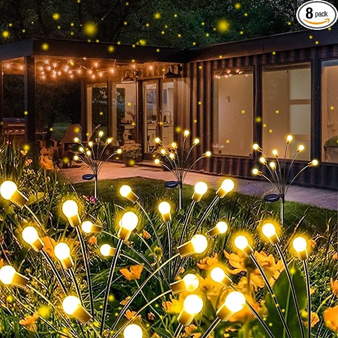 8-Pack Solar Garden Lights (Upgraded Long Lasting), 64 LED Firefly Solar Lights for Outside, Waterproof Swaying Solar Powered Yard Lights for Patio Garden Decor Pathway Xmas Decorations (Warm White)