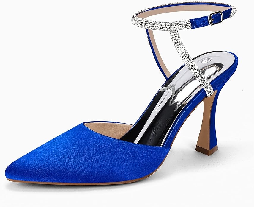 ♥Features: Closed pointed toe, high stiletto heel pumps, glitter rhinestone, adjustable ankle buckle heeled, slingback, rubber sole sandals shoes for women.