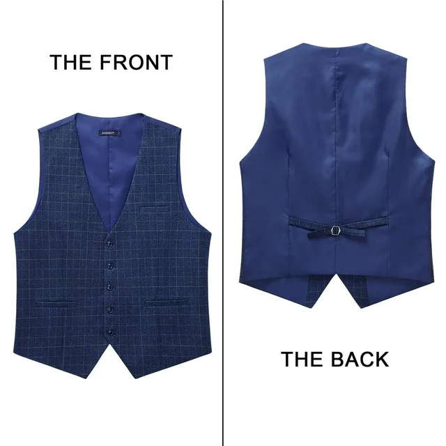 Dress Vest for Men - Men's Suit Vest Only 1 * Waistcoat 6 Size | 3 Real Pocket | 5 Buttons | Plaid Style,Formal,Luxury ———————————————————— Business Formal Dress Waistcoat Vest with 3 Pockets for Suit or Tuxedo Style: Mens Plaid Suit Vest,Classic Vest,Waistcoat for Men,Wedding Vest for Men, Classic: A classic and elegant plaid checked suit vest tailored especially for men. This was made as a matching men's plaid suit vest to our b-est selling. Paired: Men's vests dress can be paired with dress shirt, tie and bow tie at the same time. We have beautiful and high-quality clothing & accessories to choose from.-A Set Will Look Even Better