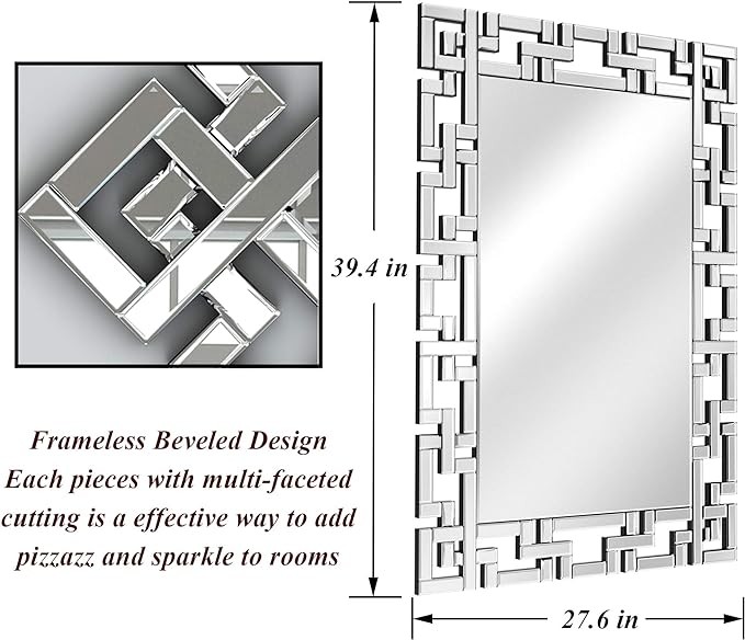 GREEK KEY WALL MIRRORS DECORATIVE: It is a effective way to add pizzazz and sparkle to rooms. This wall-mounted mirror is suitable to hang over the mantel/ washbasin/ bedroom/ home/ hotel