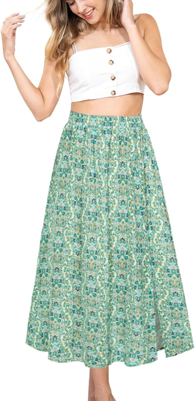 Comfort Fabric--Women’s trendy elastic high waist boho floral a line slit swing skirts made of soft, stretchy and lightweight material, from high quality fabrics to precision stitching for ultimate comfort.