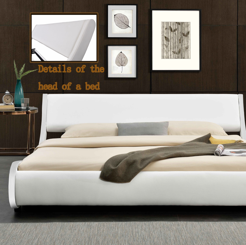 【Bedroom Refresh】 Wave-like silhouette of Our low profile bed is one of a kind addition to any contemporary bedroom. This upholstered platform bed is fully wrapped in soft PU leather for ultimate comfort and looks, and features a slatted base.