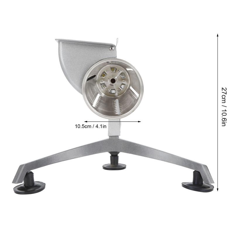 Feature: 1. Come with 5 different drums blades, which is great for cheese, vegetables, potatoes, nuts, onions, salad, pizza toppings and more.2. Adopt non‑slip foot pad design to securely hold the grater onto the surface preventing it from slipping or toppling over. Gives a more stabilized, and mess‑free kitchen working environment. 3. Made of stainless steel which is resistant to rust and corrosion, durable and sturdy. 4. The vegetable cutter parts can be taken apart easily, it's safe to be washed in the dishwasher. 5. When shaking the handle, the roller can rotate 360 degrees to cut food, which is efficient and labor‑saving. Specification: Condition: 100% Brand New Package List: 1 x Cutter Body 1 x Base 5 x Blade Note: 1. Please allow 1‑2cm error due to manual measurement. Thanks for your understanding. 2. Monitors are not calibrated same, item color displayed in photos may be showing slightly different from the real object. Please take the real one as standard. |