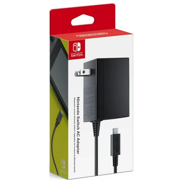 Be ready to play when you want with the help of this Nintendo Switch AC Adapter, 45496590222. It can be plugged into any 120V outlet. This adapter will allow you to recharge the battery of your Nintendo Switch console. It can be used even while you play. This original Nintendo AC adapter connects to the Switch via an integrated USB type-C connector. It makes an ideal addition to you gaming accessory kit. This adapter comes in the color black.