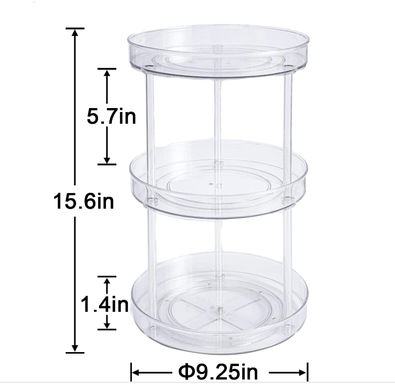 • 【A STURDY LAZY SUSAN RACK MADE TO LAST】 Manufactured from high-impact polymer plastic,This 3 Tier Lazy Susan does not only look sleek and elegant, but it is also extremely durable.It is easy to clean with mild soap and water