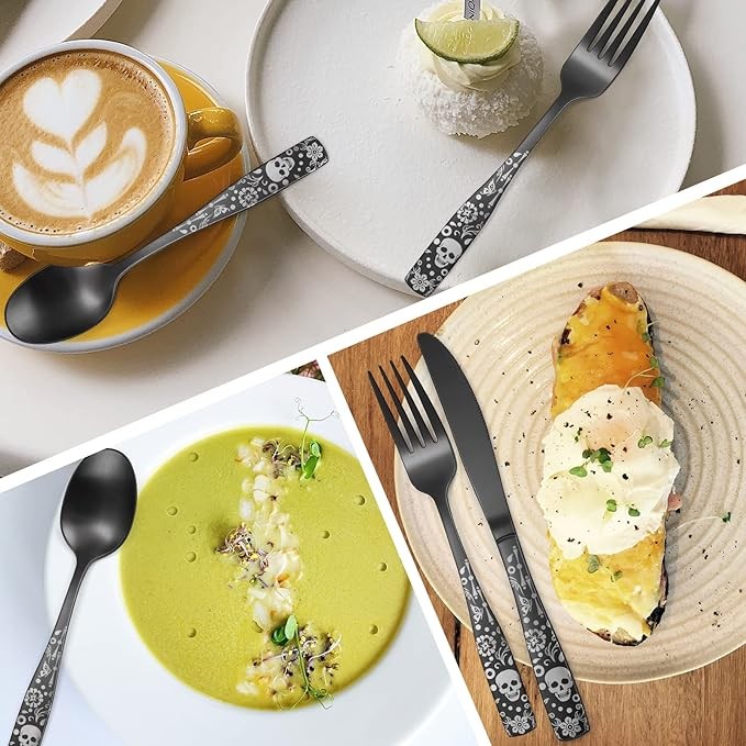 【Excellent Plating Process】:This tableware adopts a black PVD plating process.Highly mirror polished, smooth edges, comfortable handle. Our flatware set is designed to add more elegance and classical to your table naturally matches well with your existing flatware to elevate everyday meals into a fine dining experience.