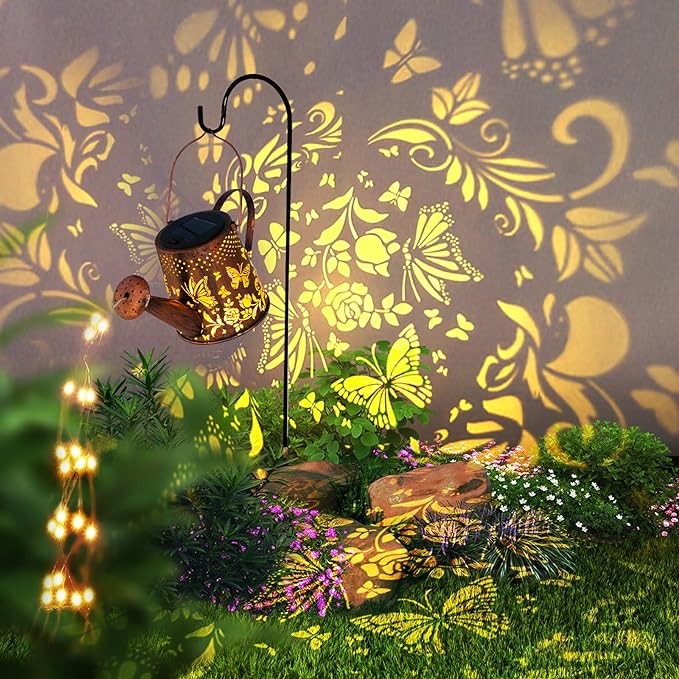 ?【Ideal decorations &gifts】Solar outdoor decor lights are also an ideal gift for housewarming and gardening.Solar watering can lights project beautiful patterns at night,giving you a dreamlike feeling in gardens,patio,lawns,and courtyards.This solar lights is a garden gift for women,parents,grandma,friends,and gardeners.Whether it's birthday,Mother's Day,Father's Day,Christmas,or Thanksgiving,they will all love this unique design.
