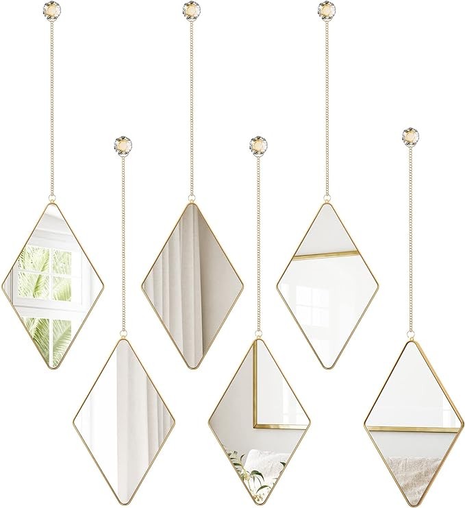 Set of 6 Wall Mirrors: the package comes with 6 pieces of hanging wall mirrors paired with gold chain and diamond shaped glass handle, equipped with screws and expansion nails as well; Full set can satisfy your home wall decor needs, make your home become elegant
