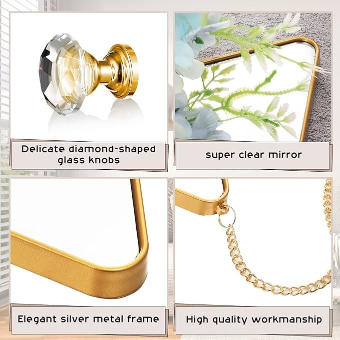 Easy Installation: the diamond hanging mirrors can be wall hang with or without chain, you just need to install the seamless nails on the wall; You can drill holes in the hanging place as well, then fix the screws and crystal glass diamond handles on the wall, you can get the decorative mirror after hang the chain, convenient for your use