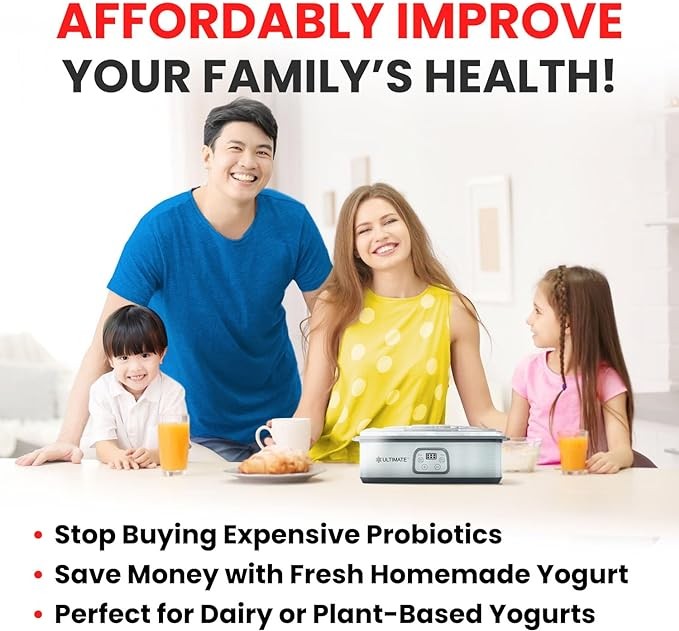 Ultimate Probiotic Yogurt Maker - Make Trillions of Live Probiotics with Adjustable Temperature & Time Control - Get Better Gut Health - Best Yoghurt Machine - Perfect Kitchen Gifts for Women & Men