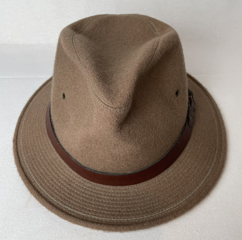 Vintage Backtrails by DOBBS Wool Fedora Safari Hat Tan Sz. LARGE 7¼-7⅜