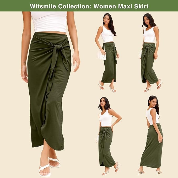 Witsmile Women’s Maxi Skirt High Waist Wrap Pencil Long Skirts for Women Slim Boho Draped Front Bodycon Dresses